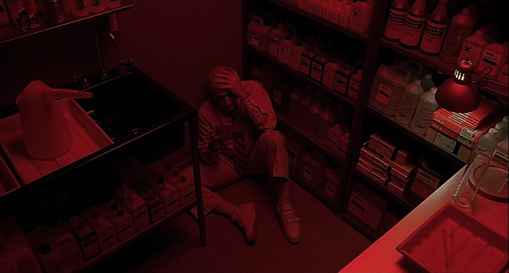 Aron develops the film in the studio, and finds a space for the sphere in the huge photo enlarger his uncle didn’t want him to use. He blows up the image, but his Uncle returns from his trip, and Aron quickly clears up. He throws the developed photograph in the trash. As he leaves, we see a dark shape materialize in the image, skittering across. The image browns and burns until there’s nothing left but a filament of thick shadow creeps over the edge of the trash can.